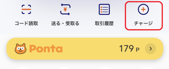 - アプリトップの「チャージ」をタップ