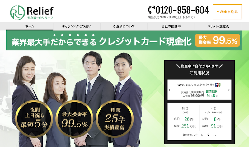 「リリーフ」は、運営歴25年以上の老舗に該当する現金化業者です。